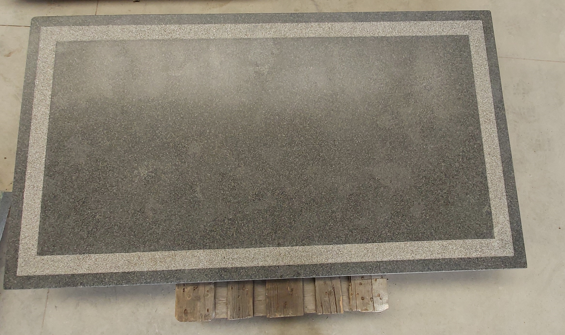 Tafelblad in hoogwaardig Jasberg graniet met gebouchardeerde rand. Afmetingen: 190 x 105 x 5cm