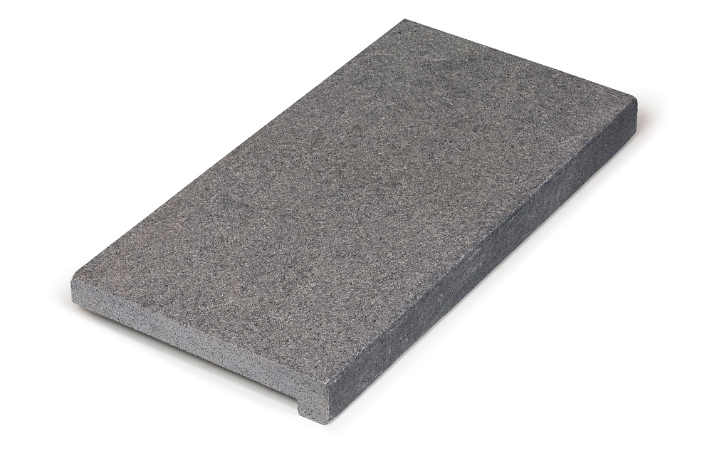 Zwembadboord in hoogwaardig graniet type Pepperino Dark Anzano van Beltrami. Afmetingen: 60x30x3cm